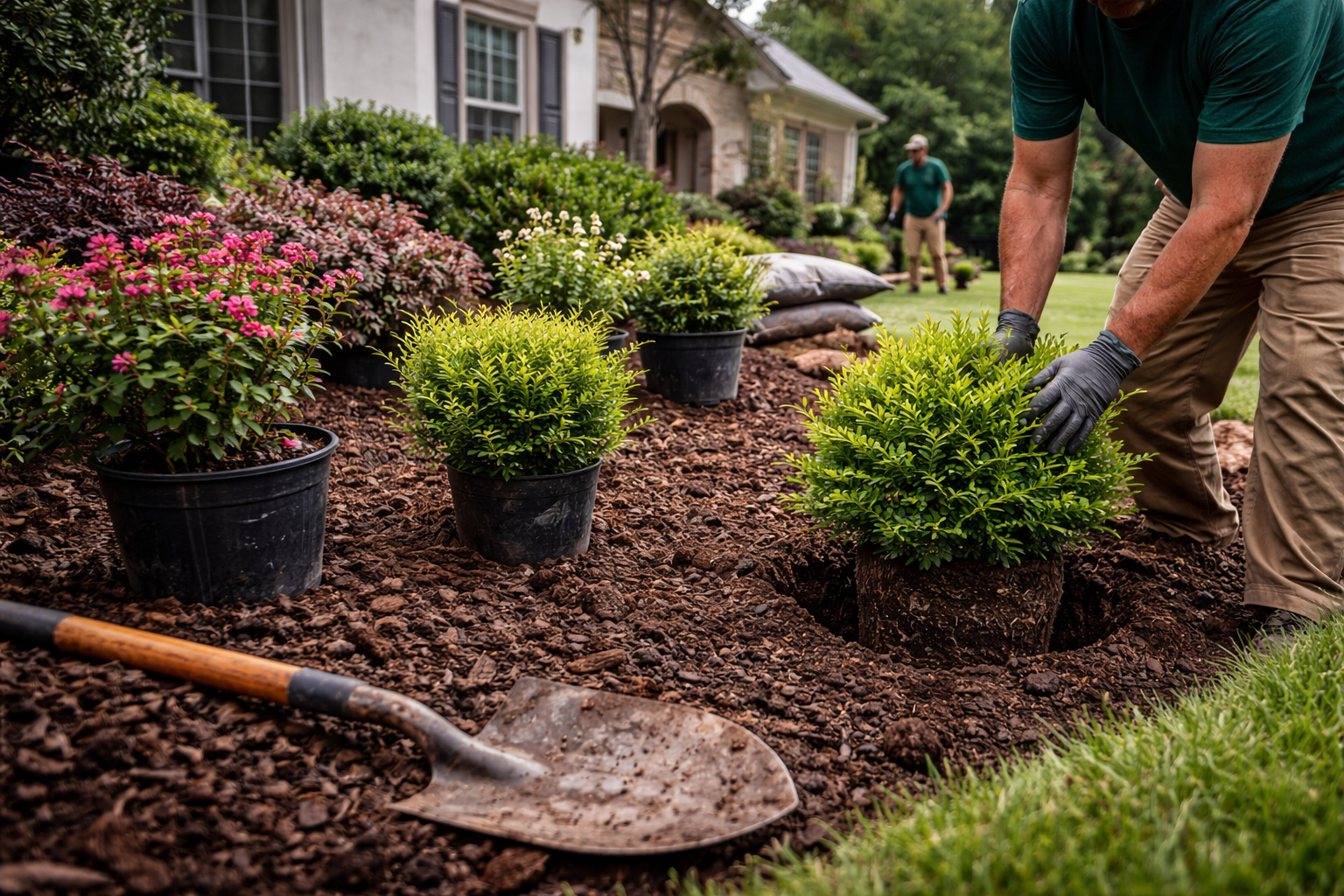 Mulch and pine straw not only enhance the appearance of your landscape but also protect your plants and soil. Our clean, well-executed installations help retain moisture, regulate soil temperature, reduce weeds, and improve overall plant health. We apply mulch or pine straw evenly and neatly, giving your beds a polished, professional look that boosts curb appeal instantly.